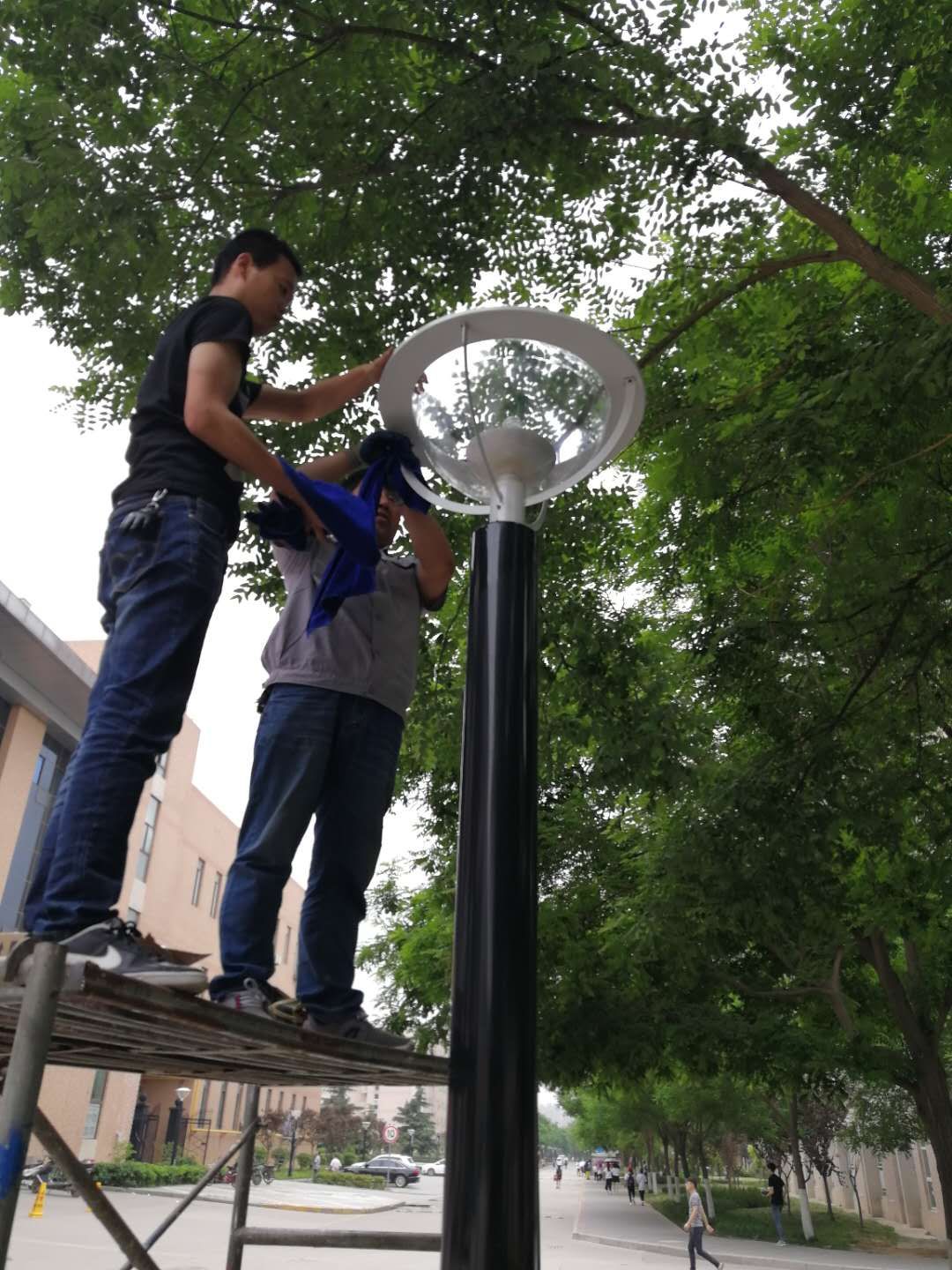 为了进一步提高校园路灯的照明效率,亮化校园环境,以崭新的面貌迎接六十年校庆,后勤集团动力服务中心从四月份起开始逐步对学生区、教学区主环道灯罩逐个进行擦洗,同时对路灯进行集中维修。