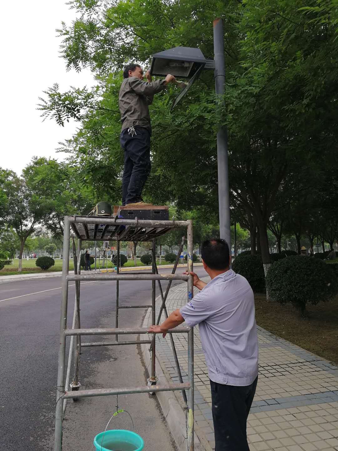 在擦洗过程中维修人员还对老化路灯线路进行检修,修复路灯40余盏。为了保持亮灯率,动力服务中心还组织人员加大夜间巡视力度,及时更换破损的路灯灯管。